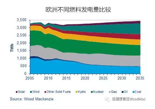 北美的天然氣需求仍在增長,這是由煉鋼等出口行業(yè)驅(qū)動的。但是,歐洲天然氣市場已接近飽和。總體需求增長的不斷放緩,能源效率的日漸提升,以及來自電力的競爭,將導(dǎo)致天然氣需求增長疲軟。與此同時,煤炭將愈加感受到更嚴(yán)格的環(huán)境立法帶來的壓力。長遠(yuǎn)來看,我們預(yù)計可再生能源成本將進(jìn)一步下降,風(fēng)電和太陽能發(fā)電的盈虧平衡成本在一些市場將低于燃?xì)獍l(fā)電。