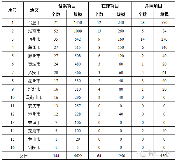 2016年10月27日,安徽省能源局發(fā)布了《我省先建先得光伏電站建設形勢分析報告》,介紹了安徽省的光伏地面電站開發(fā)情況。