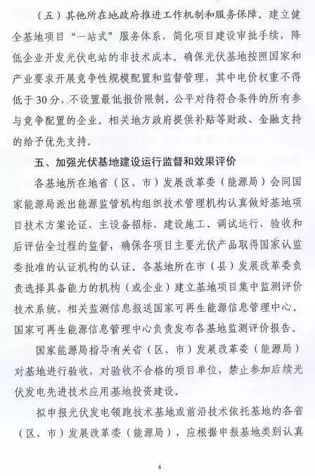 每個省(區、縣)可申報3個基地,總規模不超過2G瓦。2016年光伏發電未達到最低保障小時數的省(區、縣)不得申請。已建成未驗收以及在建基地所在市(縣)級區域不安排新建基地。