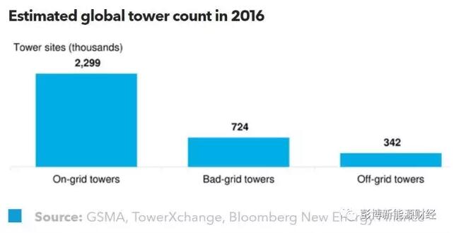 能源占據偏遠地區通訊塔(Cellular Tower)運營成本很大的一部分,傳統而言一般依賴于柴油發電,而這占據了其運營成本的40%-50%。由太陽能、鋰離子電池或甚至是燃料電池組合而成的混合能源系統,能夠以較低的成本為全世界100萬處于供電不穩定地區的通迅塔,從而降低成本并提供充足穩定的電力。
