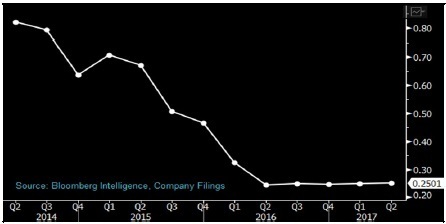 Bloomberg Intelligence 旗下分析的太陽能行業企業 2017 年業績趨勢圖
