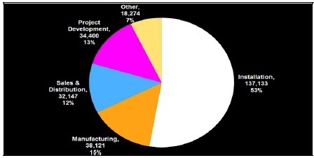 2016年美國太陽能行業就業分布圖