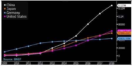 從2005年起,德國十年間的太陽能裝機量一直在全球首屈一指,直到2015年以后才被裝機迅猛增長的中國取而代之。由于德國政府為控制成本限制上網電價補貼,對公用事業項目轉向發電容量拍賣的方式,日本2016年的裝機量可能超過了德國,美國2017年也可能超越。為了保住市場份額,太陽能電池板制造商SolarWorld和太陽能逆變器生產商SMA Solar等德國太陽能企業越來越將銷售的重心放在歐盟以外市場,比如美國。
