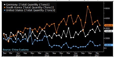 美國制造商Suniva運用1974年貿易法中的“201條款”提起貿易申訴,指控美國進口的硅基太陽能電池板對其造成巨大受害。這一貿易案可能被美國政府利用,幫助緩解中國對進口美國供應多晶硅的限制。如果美國國際貿易委員會判定Suniva的申訴有法律效力,特朗普就會決定拿出何種最終行動。中國對進口美國多晶硅的關稅壓制了REC Silicon和Hemlock Semiconductor等美國多晶硅供應商的需求。