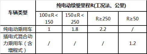2. 純電動乘用車動力電池系統的質量能量密度不低于90Wh/kg,對高于120Wh/kg的按1.1倍給予補貼。