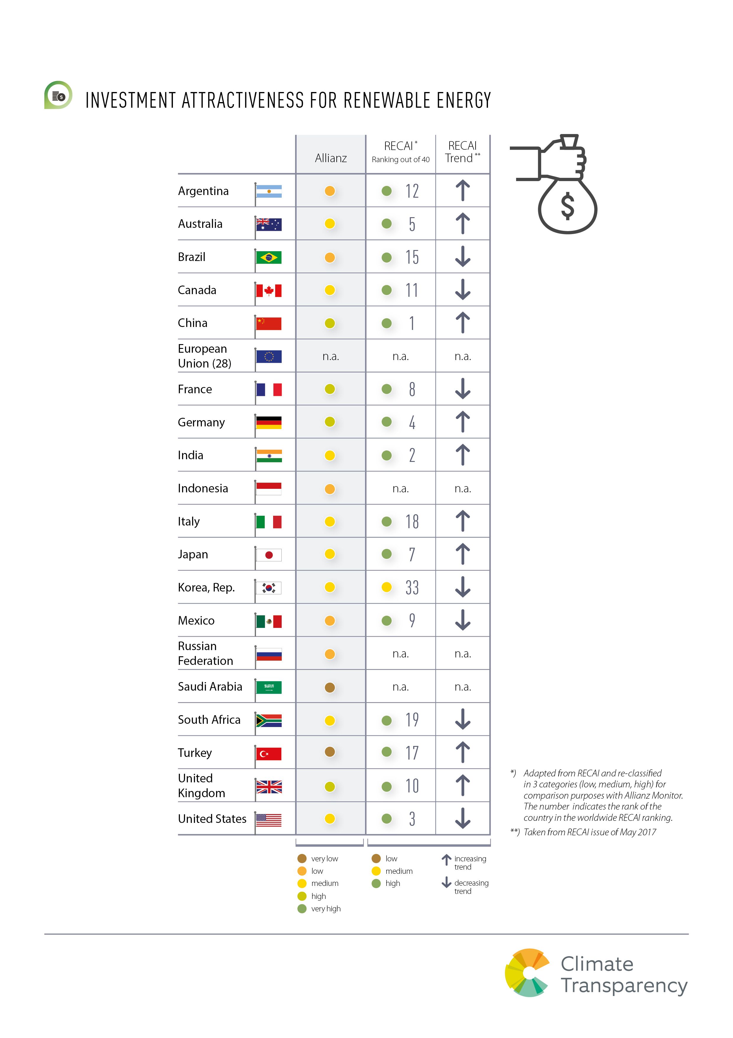 這是氣候保護透明聯盟第三次發布《從褐色到綠色:G20低碳經濟轉型》年度報告。該報告由G20成員國家的眾多專家聯合撰寫。該報告全面并精煉地介紹了G20國家的低碳經濟轉型情況,對各國在減排、氣候政策、金融、去碳化等方面的表現進行評分,并制作了國別圖表。