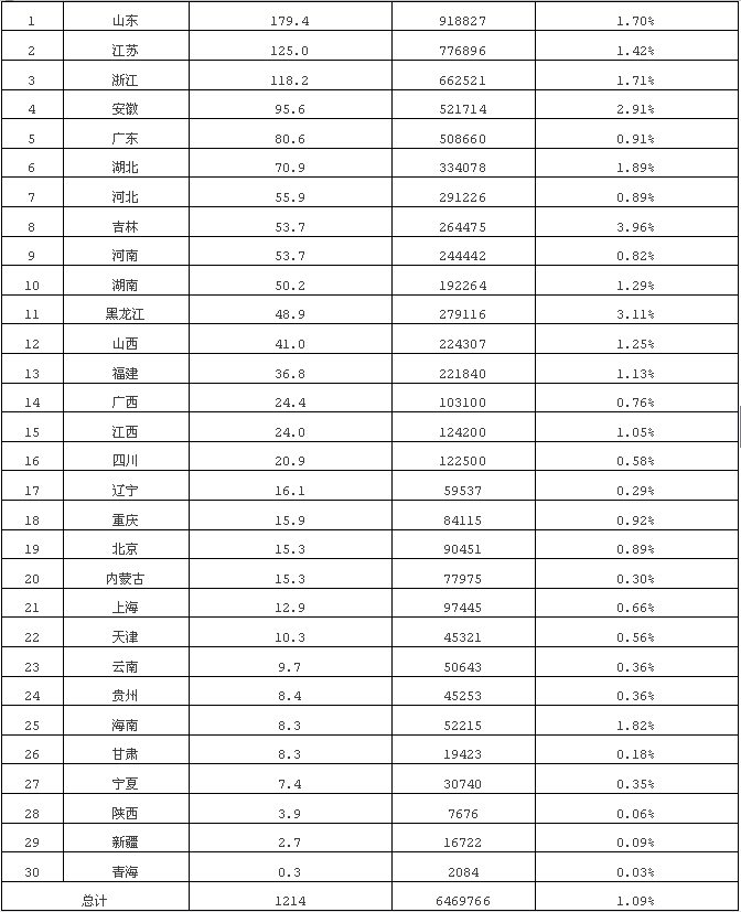 (二)各省(區(qū)、市)農(nóng)林生物質(zhì)發(fā)電情況