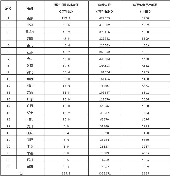 備注:年平均利用小時(shí)數(shù)測算依據(jù)為投產(chǎn)滿一年的并網(wǎng)發(fā)電機(jī)組。