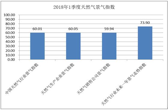 中國天然氣行業景氣指數統計結果顯示:2018年1季度中國天然氣行業景氣指數為60.01,處于較景氣狀態;天然氣生產企業景氣指數為60.05,處于較景氣狀態;天然氣銷售公司景氣指數為59.94,處于一般景氣狀態;天然氣行業未來一年景氣走勢指數為73.90,處于較景氣狀態。 [詳細]