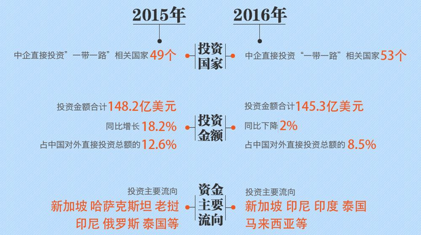去年中國(guó)對(duì)“一帶一路”國(guó)家直接投資145億美元