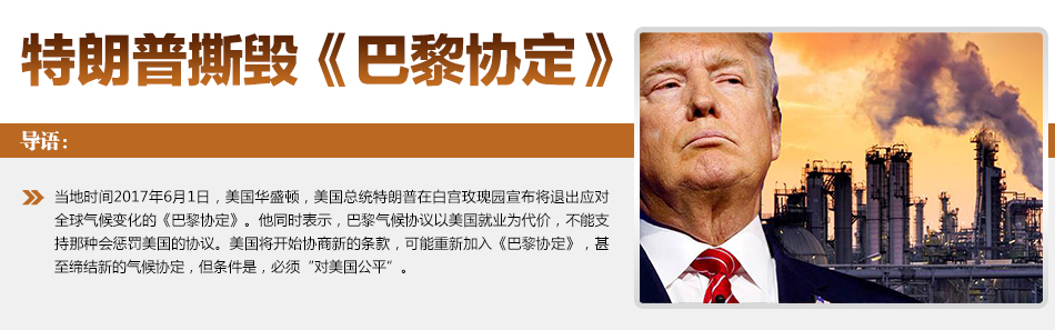 早在去年總統競選時,特朗普就承諾退出巴黎氣候協定,稱全球變暖完全是削弱美國工業的騙局。在今年1月20日正式宣誓就職總統時,特朗普又誓言要在上任后100天內“取消”《巴黎協定》,以支持美國的石油和煤炭工業。