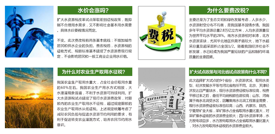 中國財政部、國家稅務(wù)總局、水利部28日對外公布《擴(kuò)大水資源稅改革試點實施辦法》,決定在河北省率先實施水資源稅改革試點的基礎(chǔ)上,自今年12月1日起在北京、天津、山... [詳細(xì)]