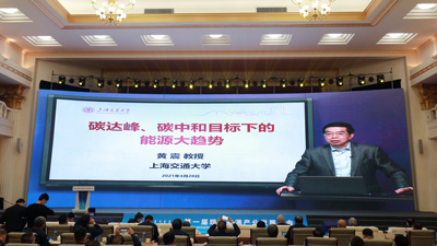 中國工程院院士,上海交通大學(xué)教授、博士生導(dǎo)師、副校長,中國民主促進會中央副主席黃震以視頻方式發(fā)表演講,題目是《碳達峰碳中和目標(biāo)下的能源大趨勢》。