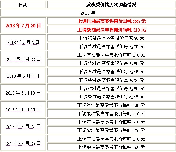 19日,國家發改委發出通知,決定將汽、柴油價格每噸分別提高325元和310元,測算到零售價格90號汽油和0號柴油(全國平均)每升分別提高0.24元和0.26元,調價執行時間為7月1...[詳細]