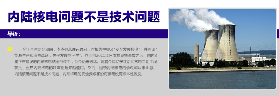 一、內(nèi)陸核電問(wèn)題不是技術(shù)問(wèn)題,內(nèi)陸核電的安全要求和沿海核電沒(méi)有根本性區(qū)別。因此,內(nèi)陸核電現(xiàn)在不能開建不是因?yàn)閺募夹g(shù)上不可能,而是需要社會(huì)輿論進(jìn)一步來(lái)理性地科學(xué)地對(duì)待。